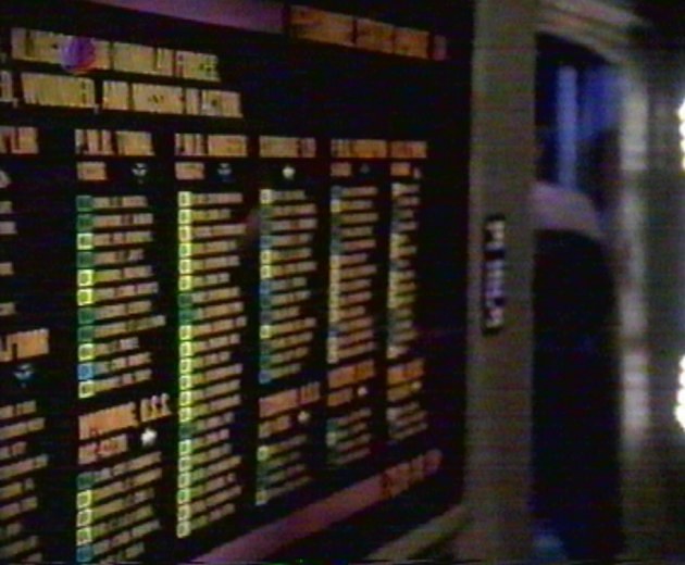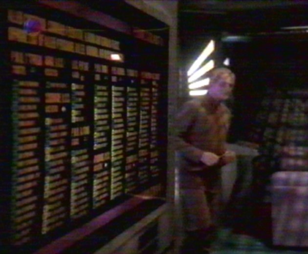 Problem Nummer 2: Oben ist es zu klein zum lesen, aber auf wirklich großen Scans kann man deutlich erkennen, daß von den ca. 143 Namen auf dem Display nur etwa ein Drittel einmalig sind. Die ersten zweieinhalb Spalten werden dann auf dem Rest des Displays nur wiederholt und neu arrangiert. Sprich: Captain Leslie Wong wurde auf der USS Akagi vermißt und starb gleichzeitig auf der USS Zapata ud laut Folge auch auf der USS Cairo. Andere Namen tauchen bis zu sechs Mal auf. Offensichtlich ist das also nichts, was für die Augen der Fans bestimmt war. In den Folgen konnte man die Namen zum Glück auch nicht lesen.
